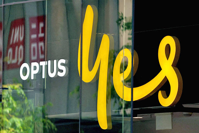 File photo shows a sign on the window of an outlet for the Australian communications company Optus...